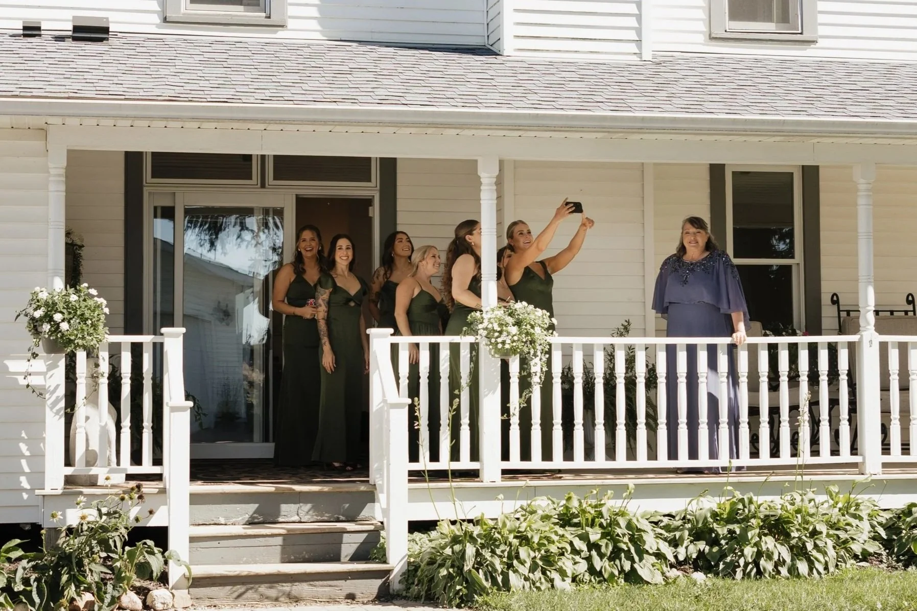 Bridesmaids take a selfie on the front porch of The Cottage, one of two suites at Abella (Photo by Miranda McLean Photo)